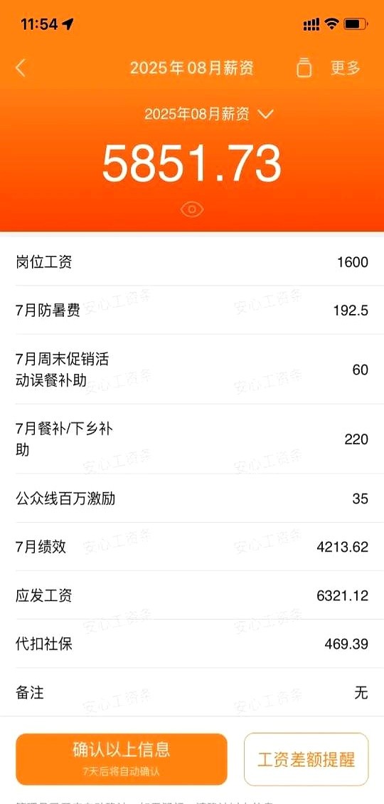 七月份的工资刚到卡上,虽然跟一线差远了,可对我来说,已经挺满足了。